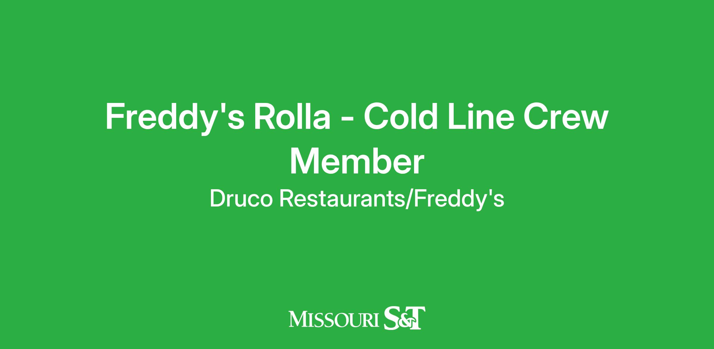 Druco Restaurants, a proud franchisee of Freddy’s Frozen Custard and Steakburgers, is bringing the Freddy’s experience to Rolla, MO! We are looking for Cold Line Team Members to join our team.