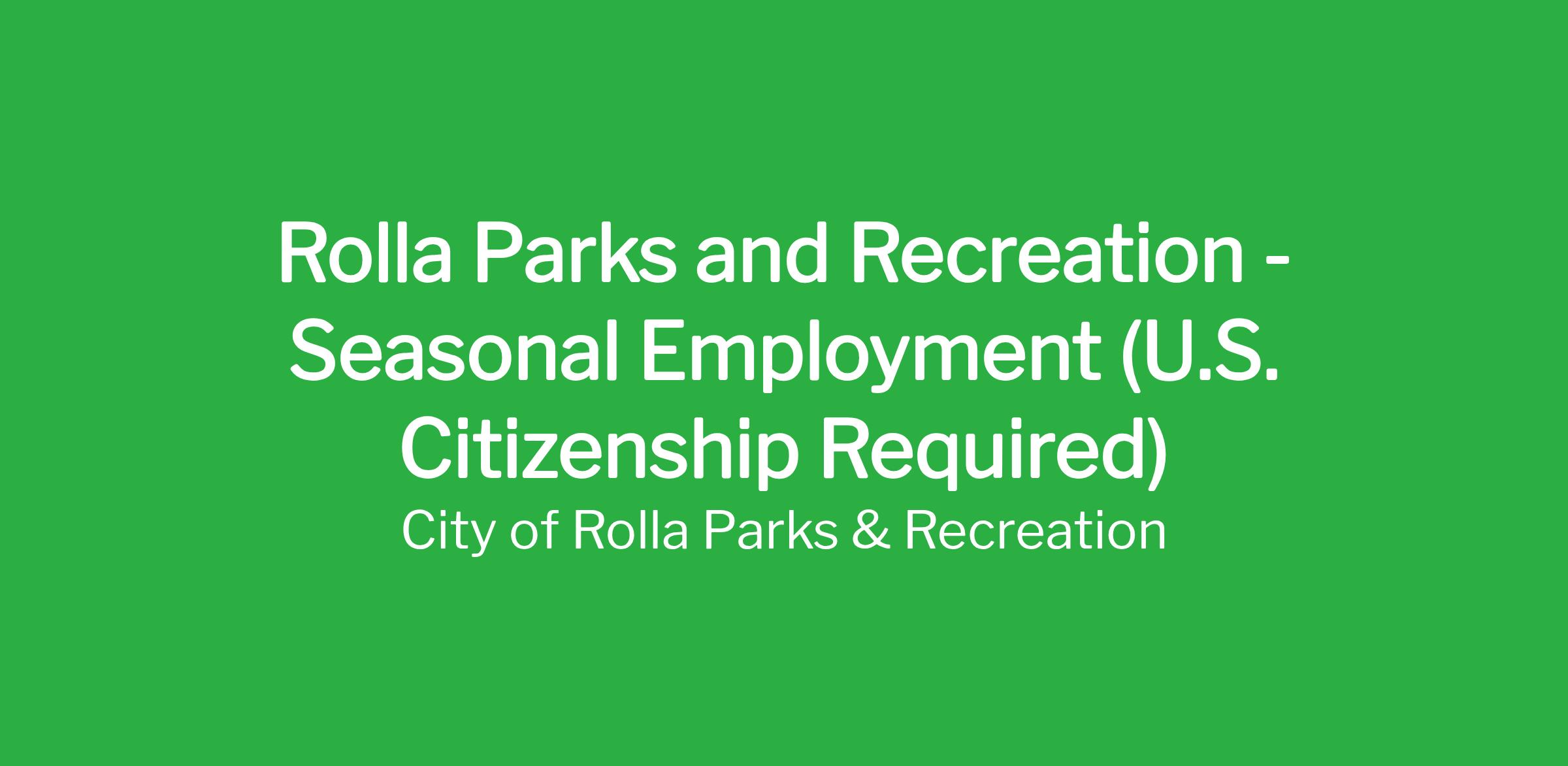Rolla Parks and Recreation is now hiring for summer jobs! Positions include camp counselors, lifeguards, umpires, concession workers, and maintenance staff. Must be 15+ with a work permit (maintenance 16+). Join our team this summer! π